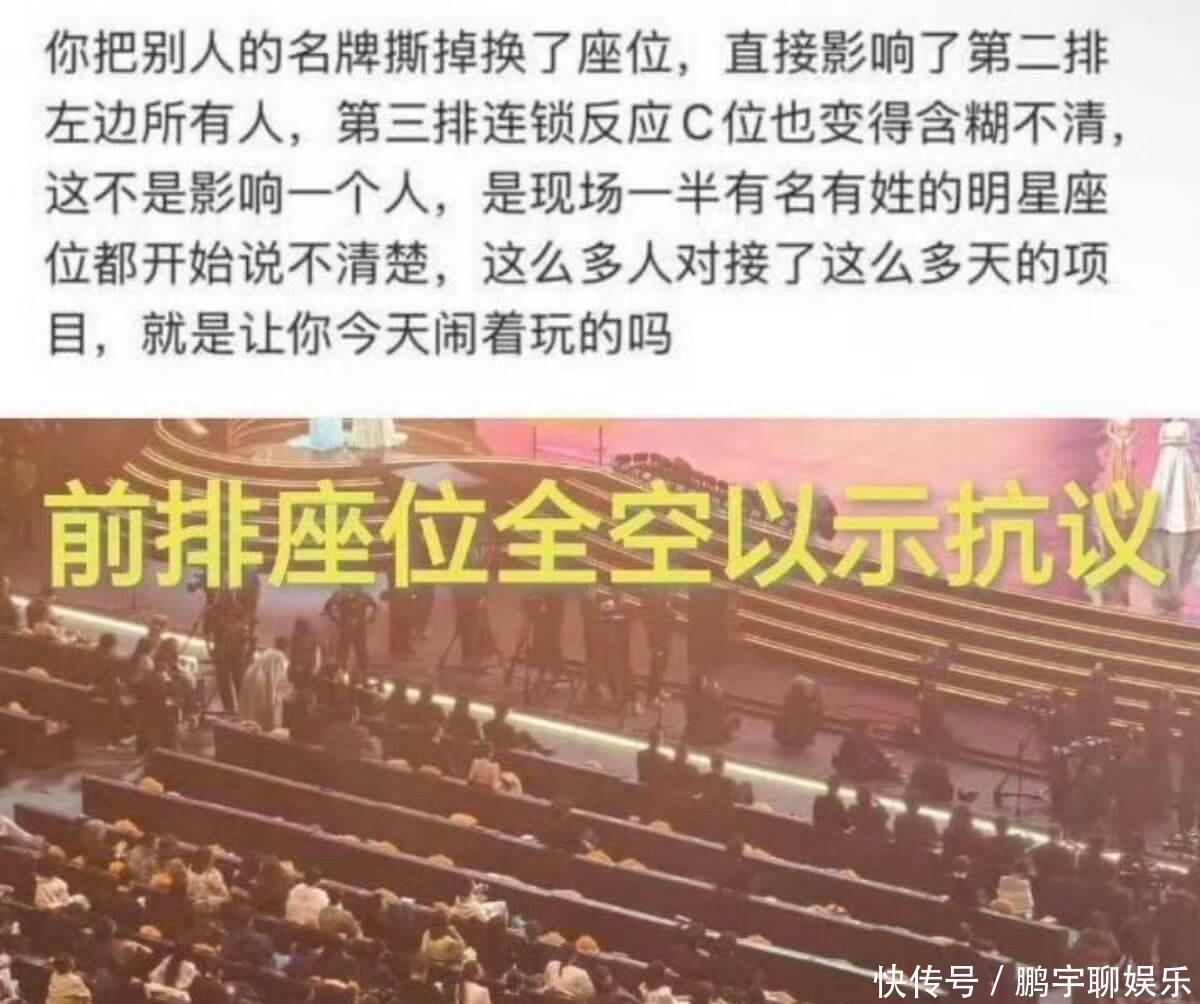 更加激烈的事情发生了,在典礼举行过程中,有疑似工作人员发出消息,称他们正忙着让明星们返回原先的座位。